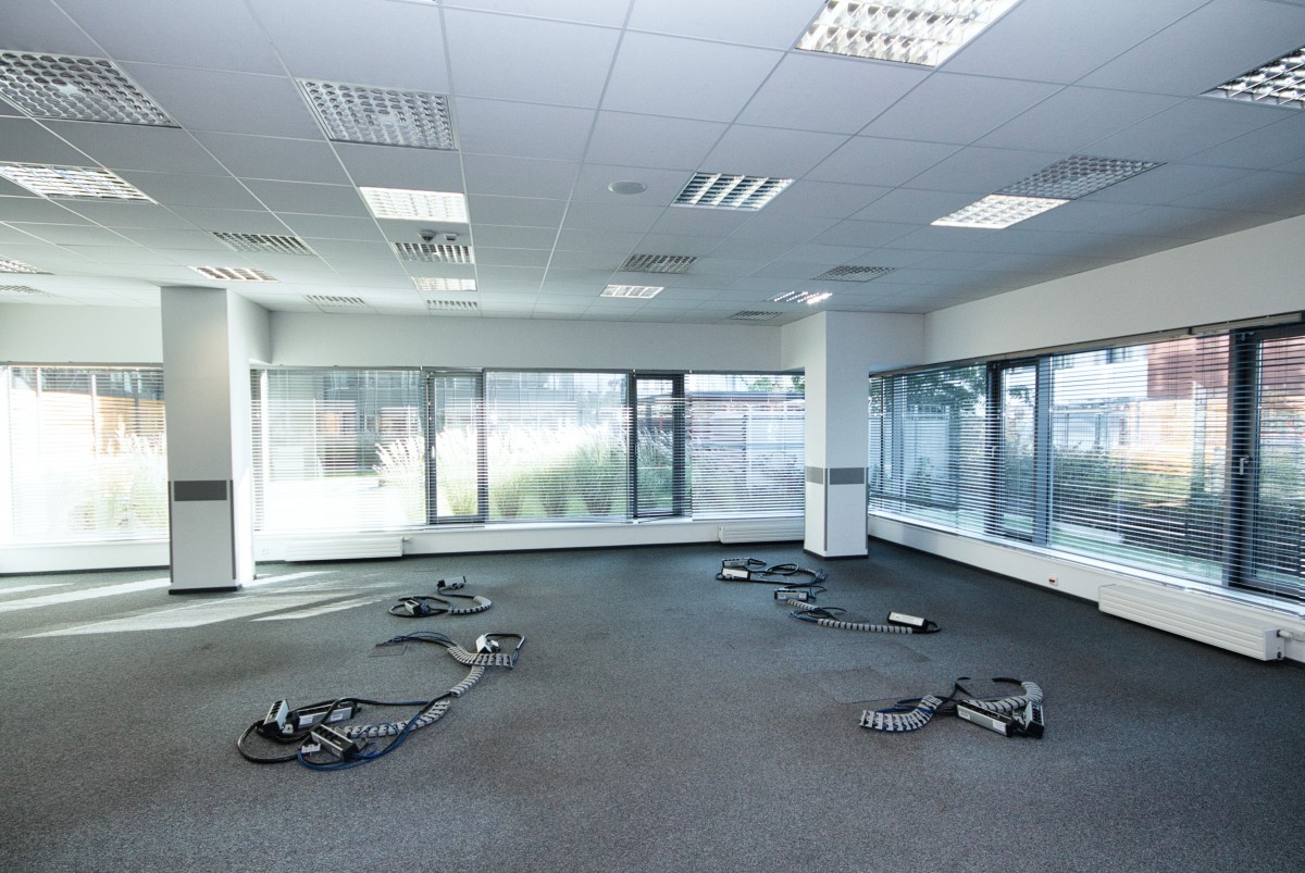 Podłogi techniczne, sufity podwieszane, klimatyzacja oraz instalacja alarmowa i przeciwpożarowa.