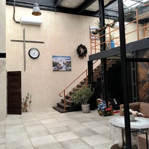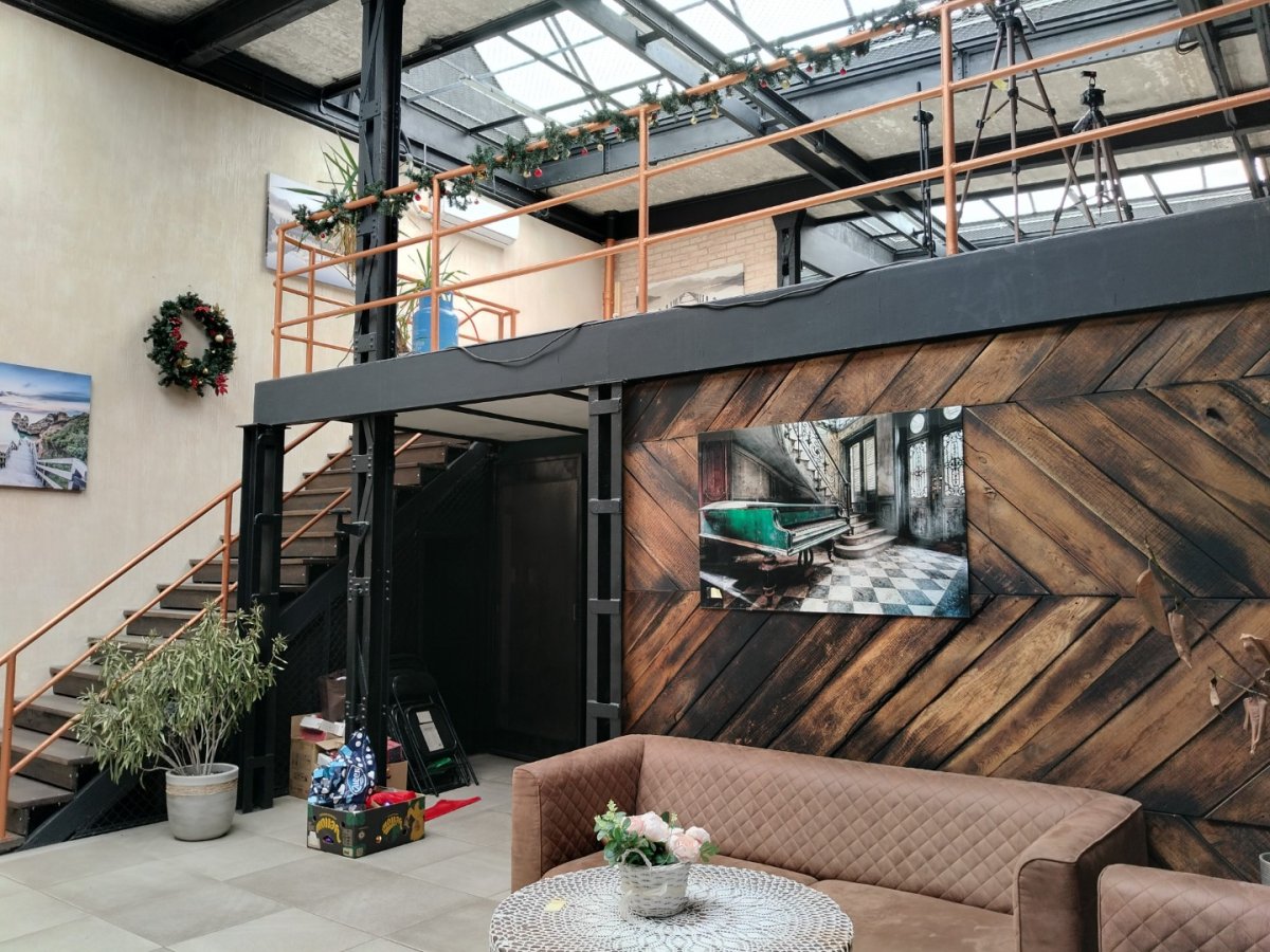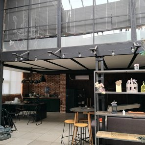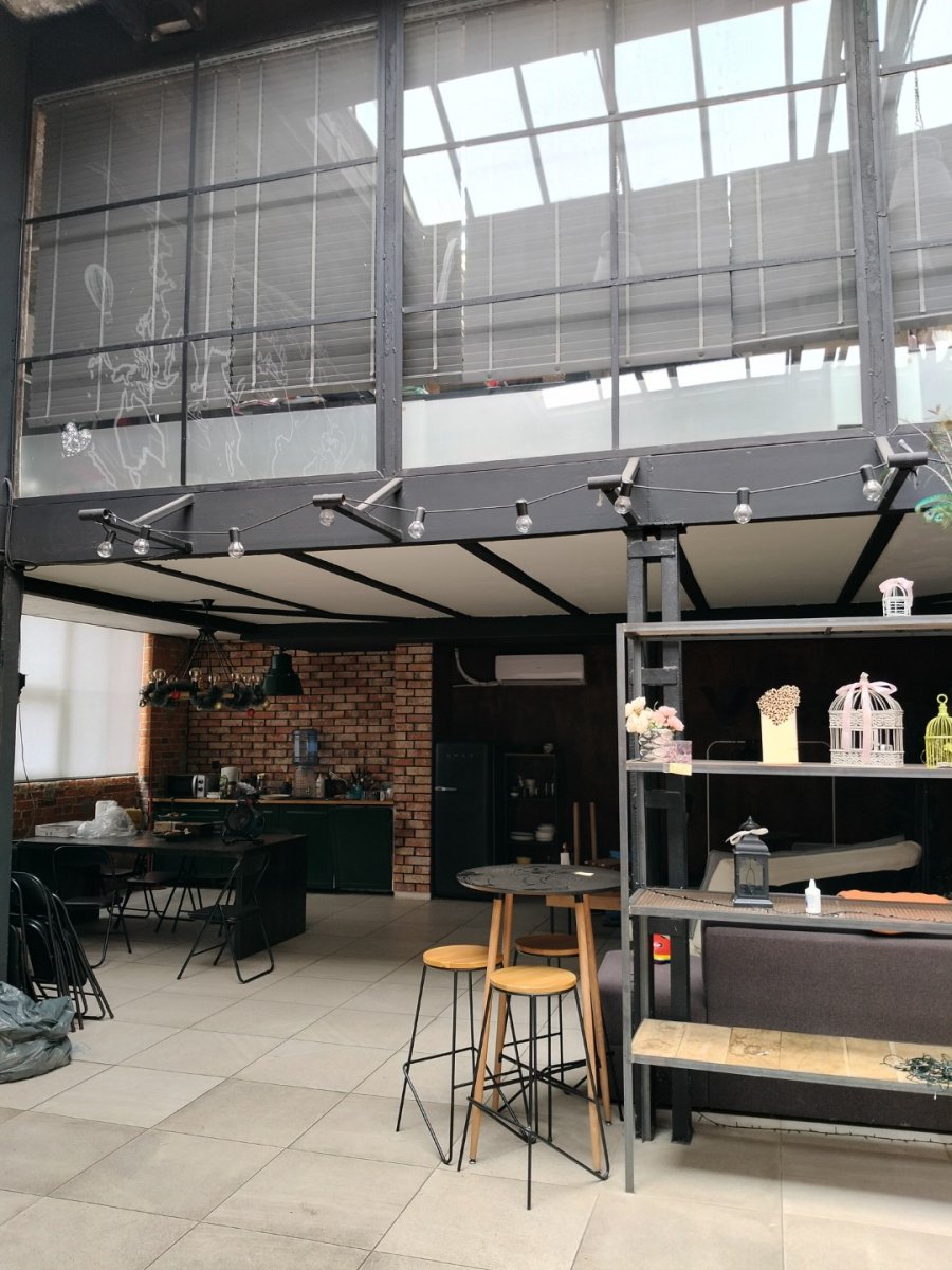 Wysokość całkowita od 5,5 do 7 m, antresola zajmuje ok. 190 m2.