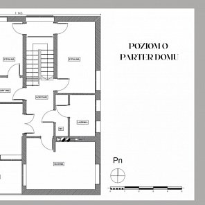 Parter: hall wejściowy 11,3 m2, pomieszczenia mieszkalne (pokój – z pełną infrastrukturą wentylacyjną jako kuchnia), 2 małe sypialnie, pomieszczenia gospodarcze i magazynowe, w tym pralnia, suszarnia, spiżarnia. Łącznie parter 110 m2.