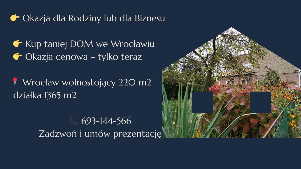 Przestronny dom wolnostojący 220 m² na działce 1365 m² we Wrocławiu – Strachowice.