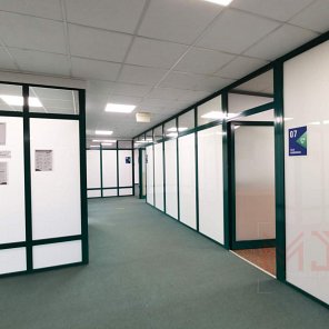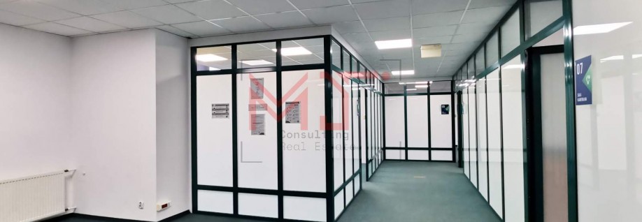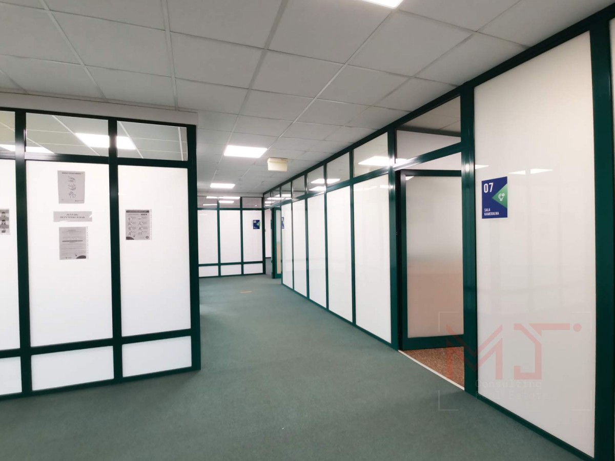 Powierzchnia podzielona ściankami szklanymi mlecznymi, 4 przestronne pokoje, duży korytarz, nadaje się na działalność szkoleniową, biurową itp.