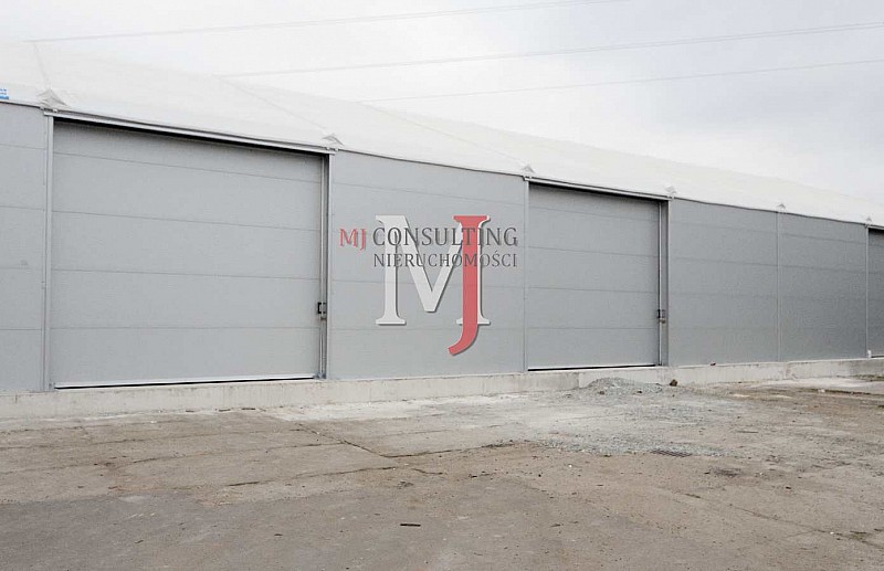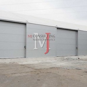 Dwie bramy wjazdowe sterowane elektrycznie, możliwość wjazdu samochodów ciężarowych i TIR do hali.