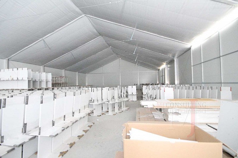 Ocieplona, wysokość 4-6 m w zależności od potrzeb najemcy, z oknami (na zdjęcia bez okien) z możliwością dogrzewania. Hale będą gotowe po 2-3 miesiącach od podpisania umowy najmu.