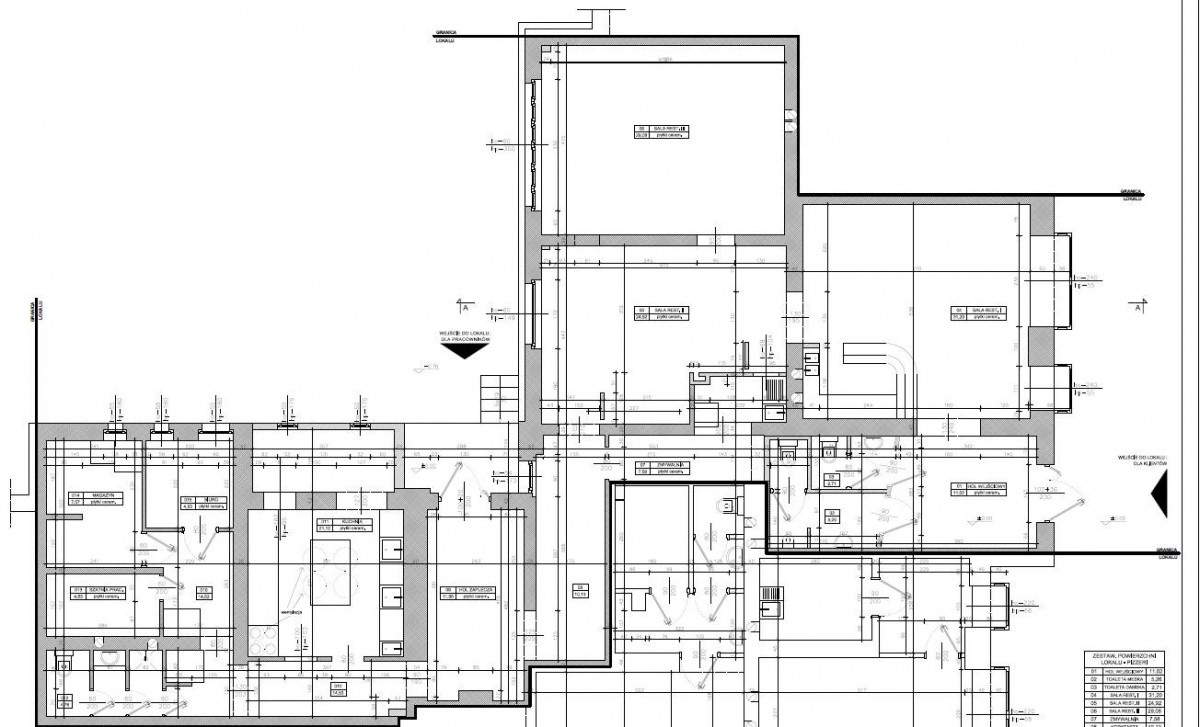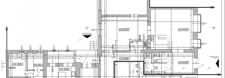 Lokal posiada obecnie podział na 3 duże sale ekspozycyjne od 25 do 30 m2, 3 łazienki, zaplecze socjalne i małe biuro.