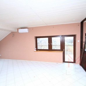 PODDASZE: duży pokój garderobą, osobną kuchnią i łazienką oraz tarasem.