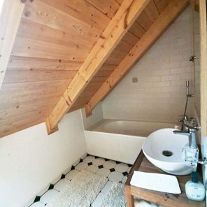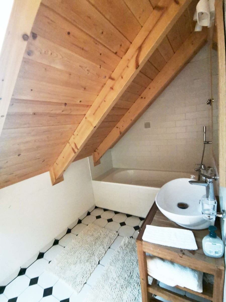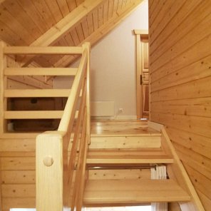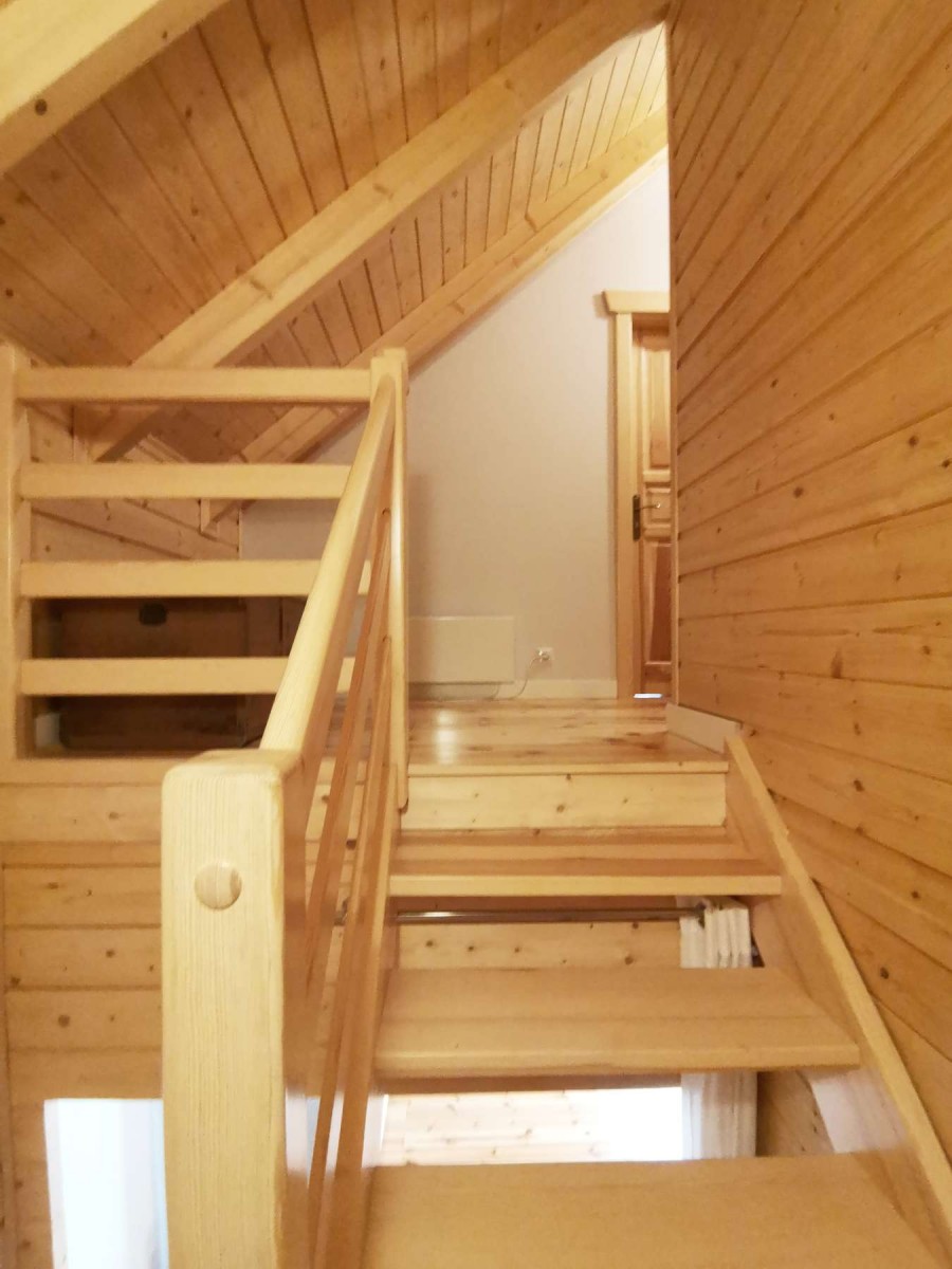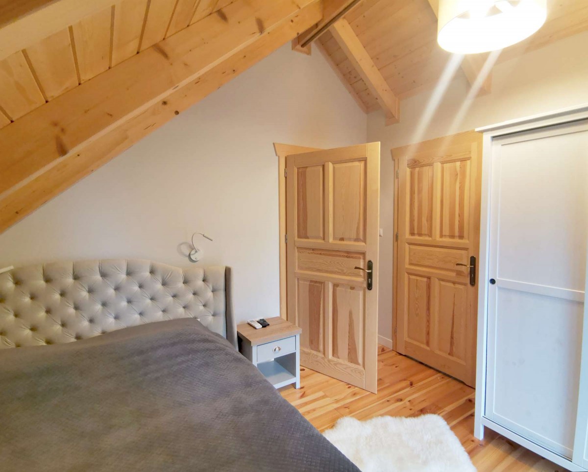 Łazienki wykończone w płytkach ceramicznych. Dom w całości wykończony naturalnym drewnem wysokiej jakości