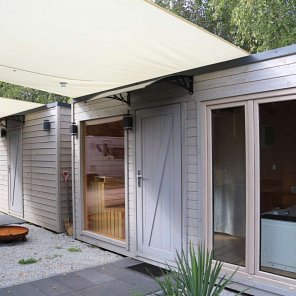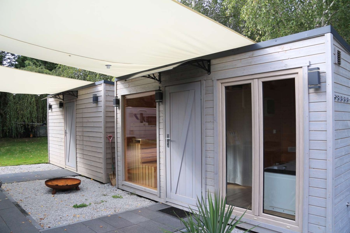 Na działce zaplanowana jest strefa relaksu: pomieszczenie z sauną oraz dwuosobowa wanna z hydromasażem.