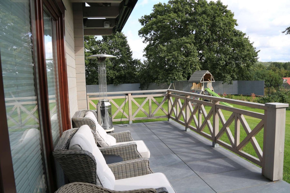Wysoki standard, nowoczesne rozwiązania w systemie ogrzewania, efektowny design oraz spokojna lokalizacja pod lasem z pięknymi widokami, stanowią podstawowe atrybuty domu.