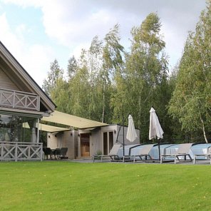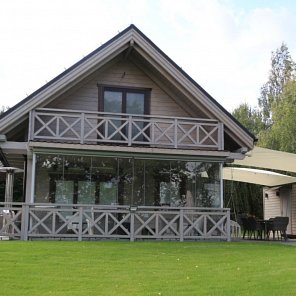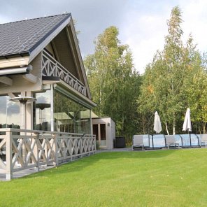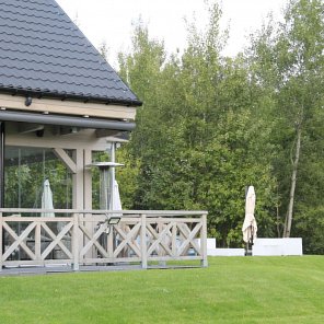 Na zabudowę domu składa się budynek letniskowy o pow. 57 m2 z przeszklonym tarasem 18m2,