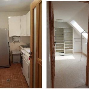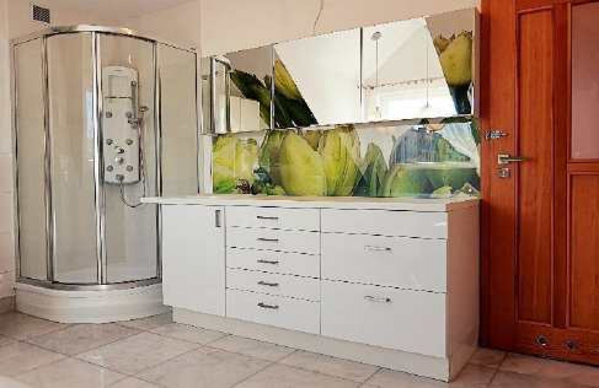 Pełne wyposażenie w sprzęty użytkowe i AGD: pralka, zmywarka, płyta grzewcza, piekarnik, lodówka.