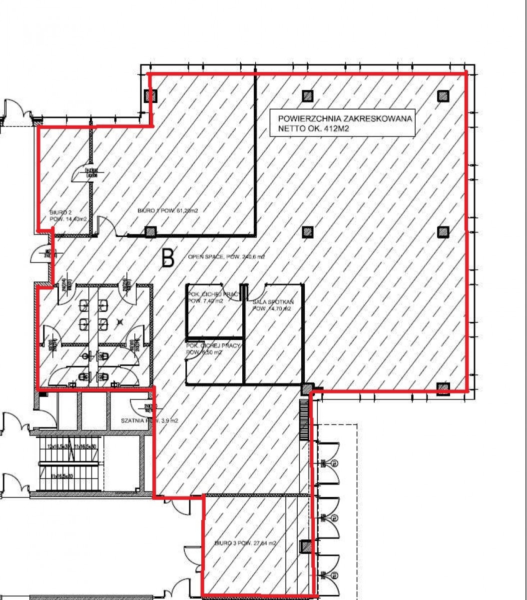 a pomieszczenia podzielone ściankami G-K, co pozwala na dodatkową wygodną aranżację zgodnie z potrzebami najemców.