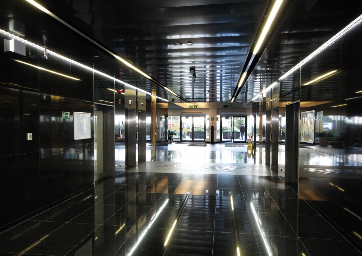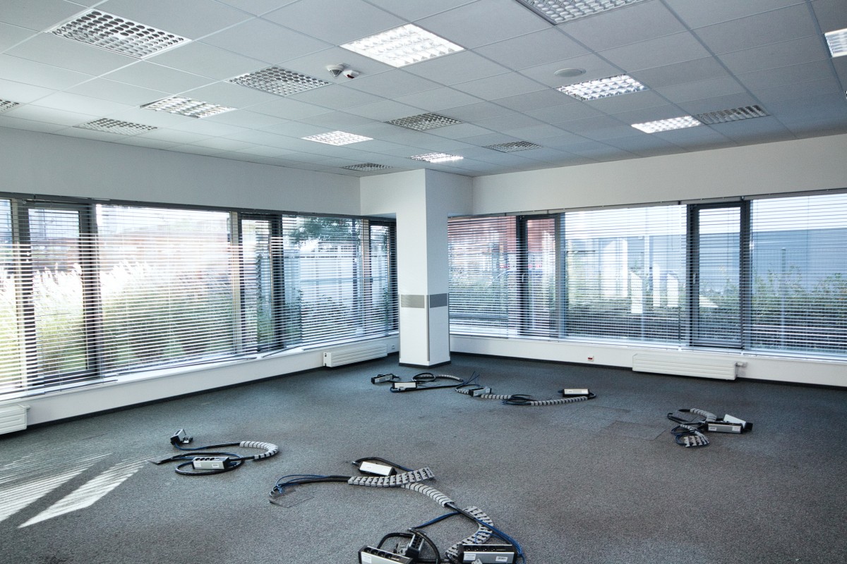 Podłogi techniczne, sufity podwieszane, klimatyzacja oraz instalacja alarmowa i przeciwpożarowa.