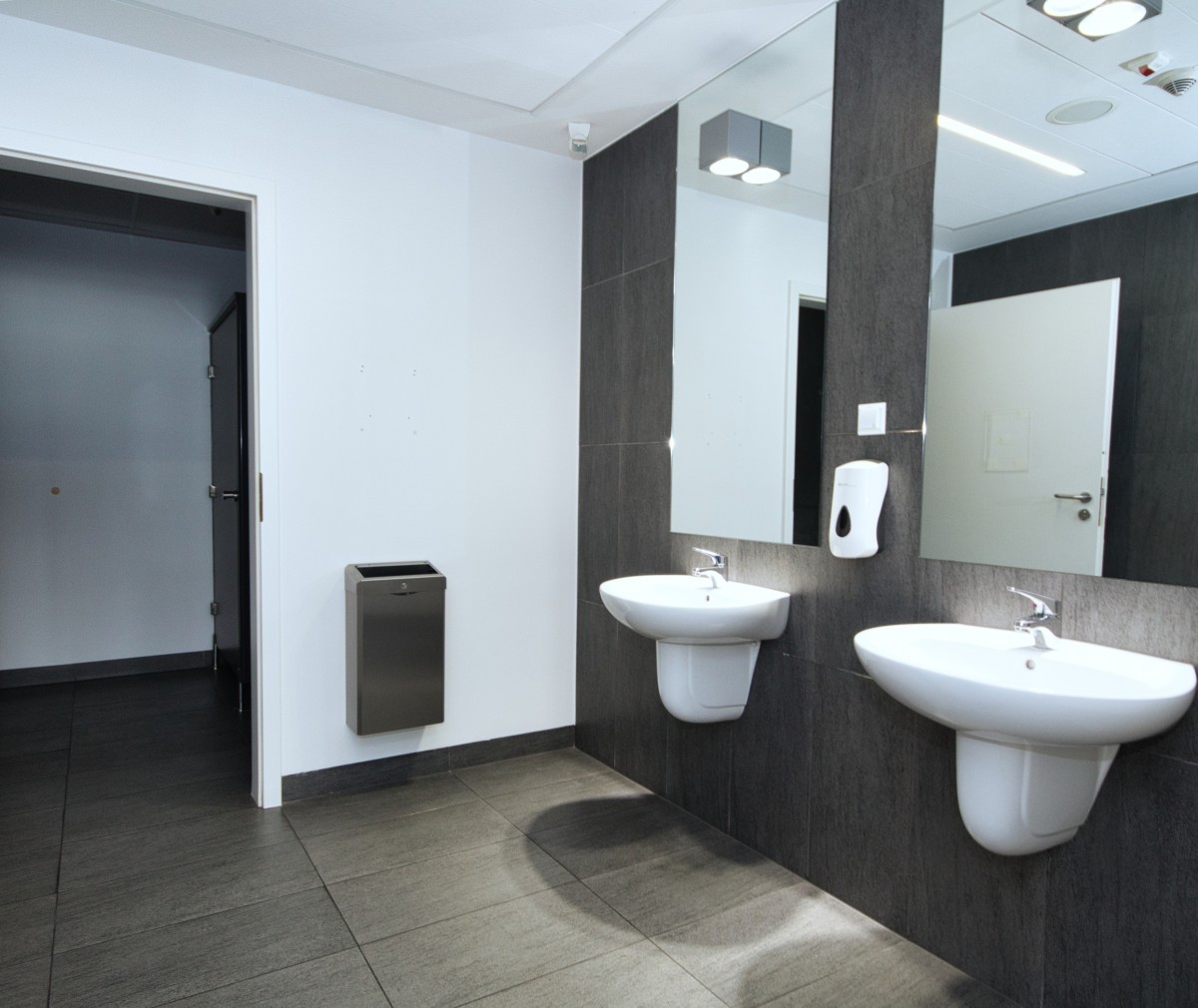 miejsce na szatnię i przebieralnię, zaplecza socjalne i sanitarne (wc damskie i męskie). Szerokie i wygodne korytarze,