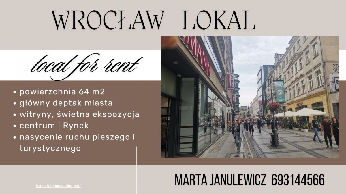 Wynajem lokalu Wrocław, ul. Oławska: lokal parterowy 64m2 z witrynami, idealny na działalność handlową.