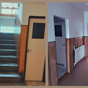 Parter: hall wejściowy 11,3 m2, pomieszczenia mieszkalne (pokój – z pełną infrastrukturą wentylacyjną jako kuchnia), 2 małe sypialnie, pomieszczenia gospodarcze i magazynowe, w tym pralnia, suszarnia, spiżarnia. Łącznie parter 110 m2.