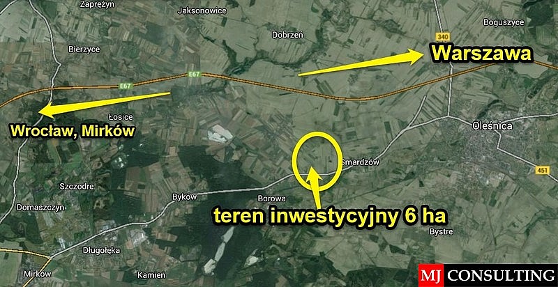 Wrocław – Smardzów grunt przemysłowy o pow. 6,66 ha sprzedaż.